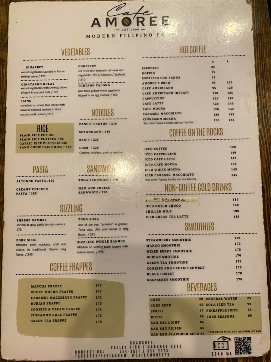 Cafe Amoree also tantalizes with crispy delights like Crispy Pata and the savory-sweet Binagoongan, which highlight the café's dedication to traditional recipes. Complement your meal with a cup of their renowned coffee, praised by guests for its exceptional quality. Overall, Cafe Amoree offers a warm ambiance paired with a diverse menu, making it an exceptional spot for both casual meals and special gatherings.
